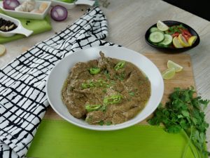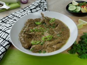 Garnish with green chilli,fresh coriander and serve with naan.