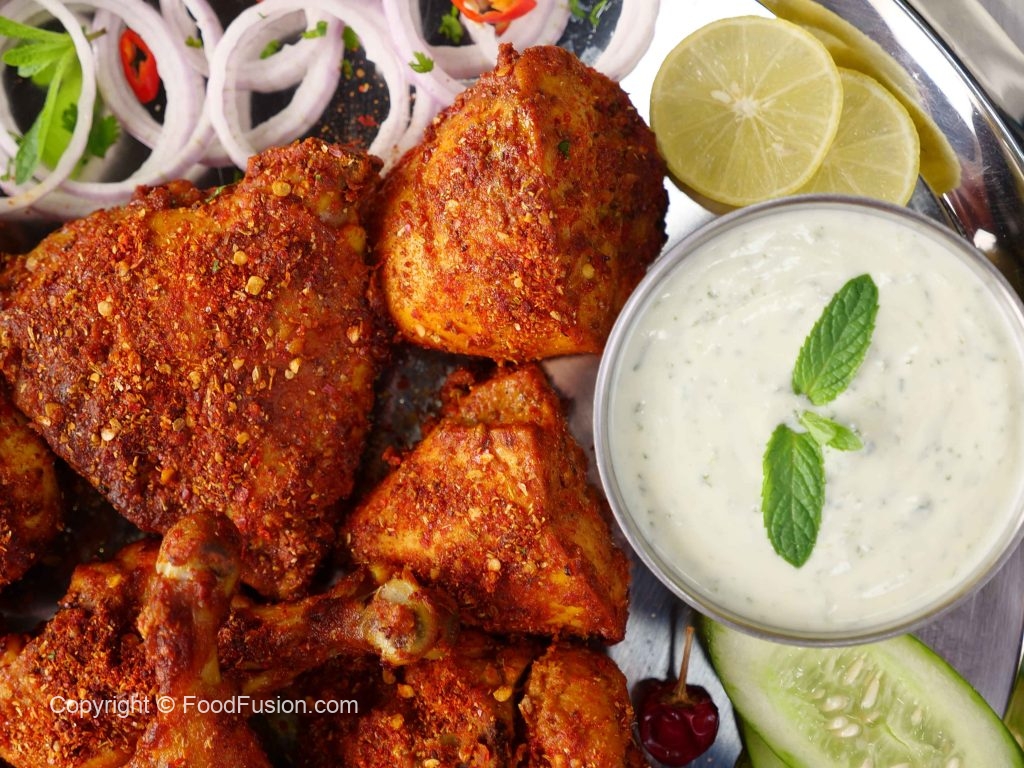 -Place marinated chicken pieces on oven grill & sprinkle prepared spice mix.