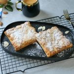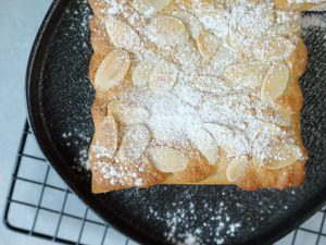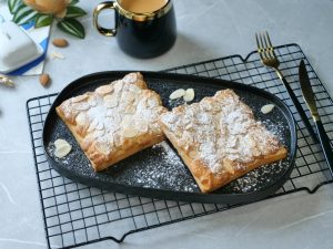 -Pipe out prepared mixture on both slices & sprinkle almonds flakes.
