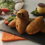 -Add prepared mince filling (2 tbs) & fold the dough with the help of wet cloth to make D-shape samosa shape (makes 8).