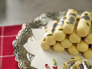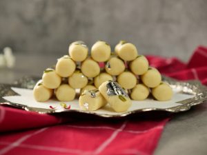 -Decorate with edible silver leaf,pistcahios & serve (makes 22).