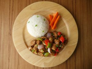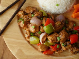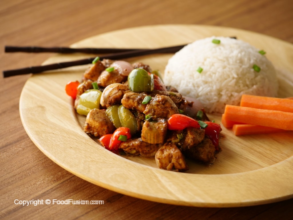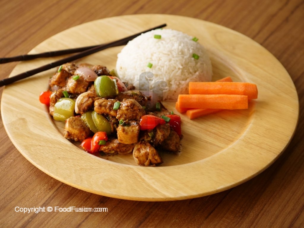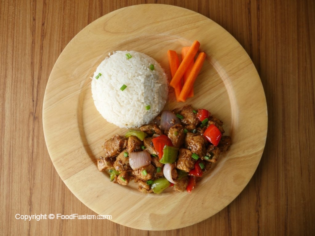 In a wok,add oil and marinated chicken,cook until chicken is golden and set aside.