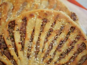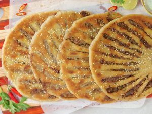 -Add prepared beef filling (100g),apply water,gather all the sides of the dough,twist,pinch & seal the ends.