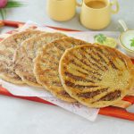 -On heated griddle,place paratha (sesame side down),add clarified butter & cook from both sides on low flame until golden (makes 5).