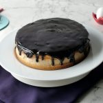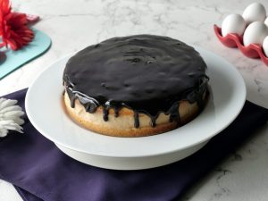 Now pour prepared chocolate ganache onto the top of cake & refrigerate until chilled.