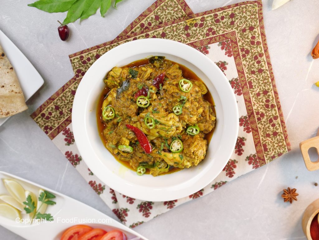 -Karahi mein cooking oil,sukhi lal mirch,curry patta aur tayyar masala dal ker ache tarhan mix karein aur halki ancch per oil alag ho janay tak paka lein (8-10 minutes).