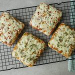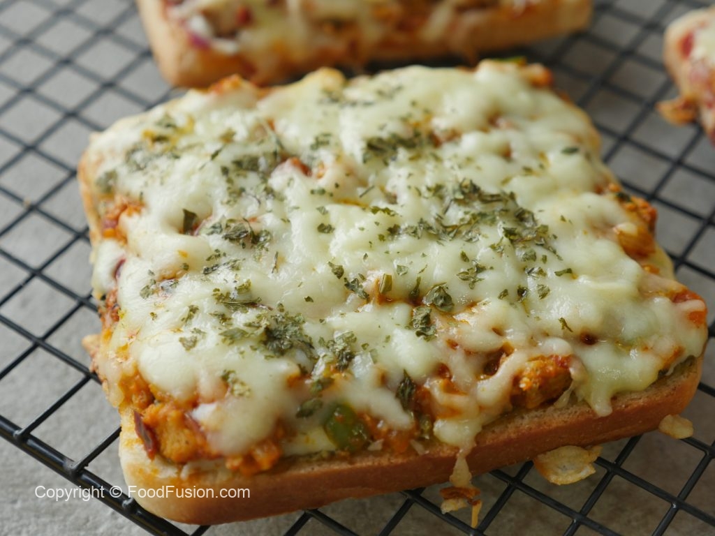 Hari chutney dal ker pheela lein,cheddar cheese,cooked chicken mixture,mozzarella cheese aur dried parsley dal ker chulha on karein aur dhak ker halki ancch per cheese melt hunay tak paka lein (approx. 2-3 minutes) & serve karein!