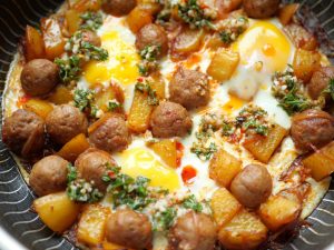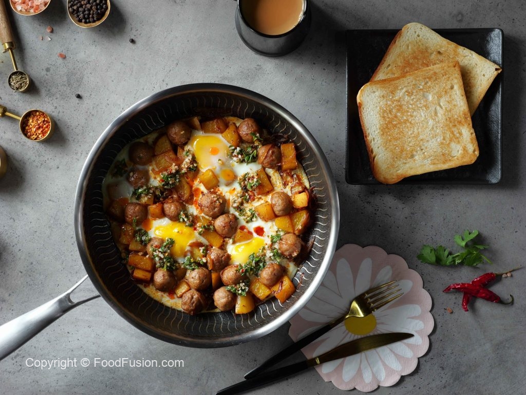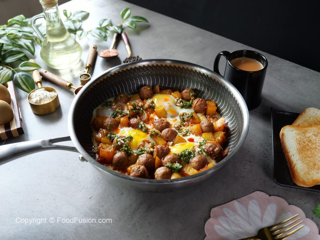-Greased frying pan mein meatballs dal dein,chulha on karein aur halki ancch per light golden ho janay tak fry ker lein (3-4 minutes) & side par rakh dein.