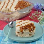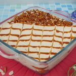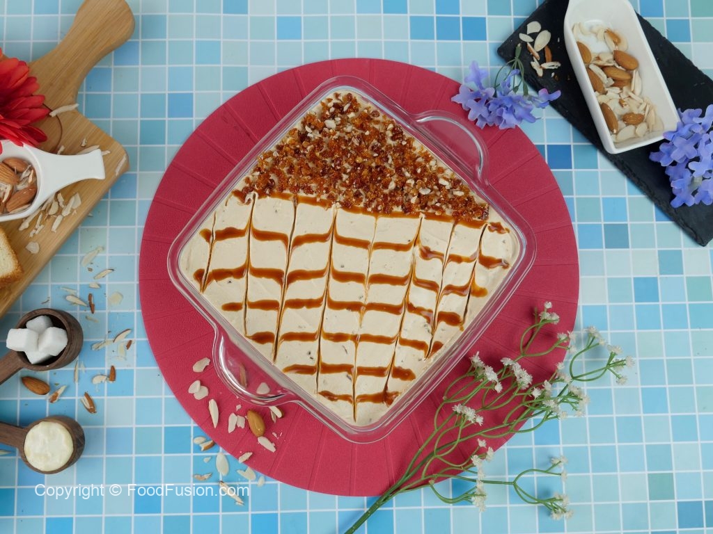 Garnish with caramel sauce,caramel crunch & serve chilled.