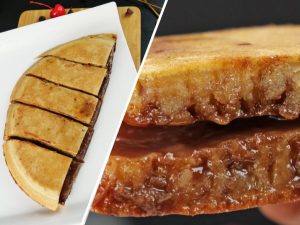 -On a griddle, add organic clarified butter, let it melt & heat it. (160° C)