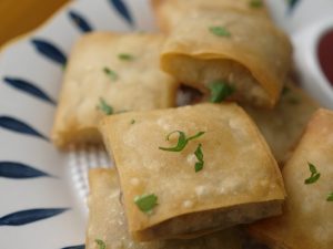 Apply all-purpose flour slurry and fold all sides to make a square box.