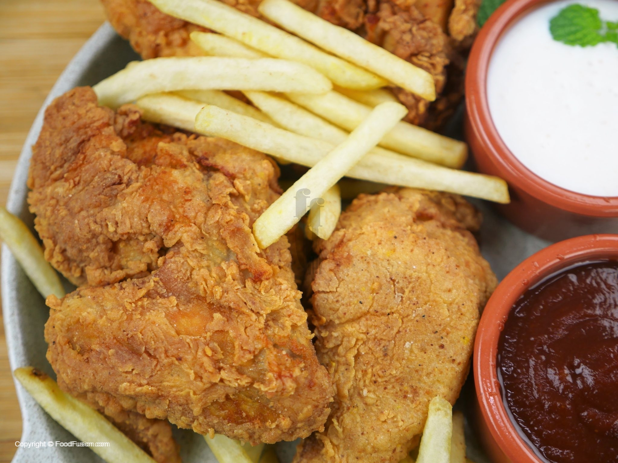 Serve with French Fries, Dinner Rolls and garlic Sauce.