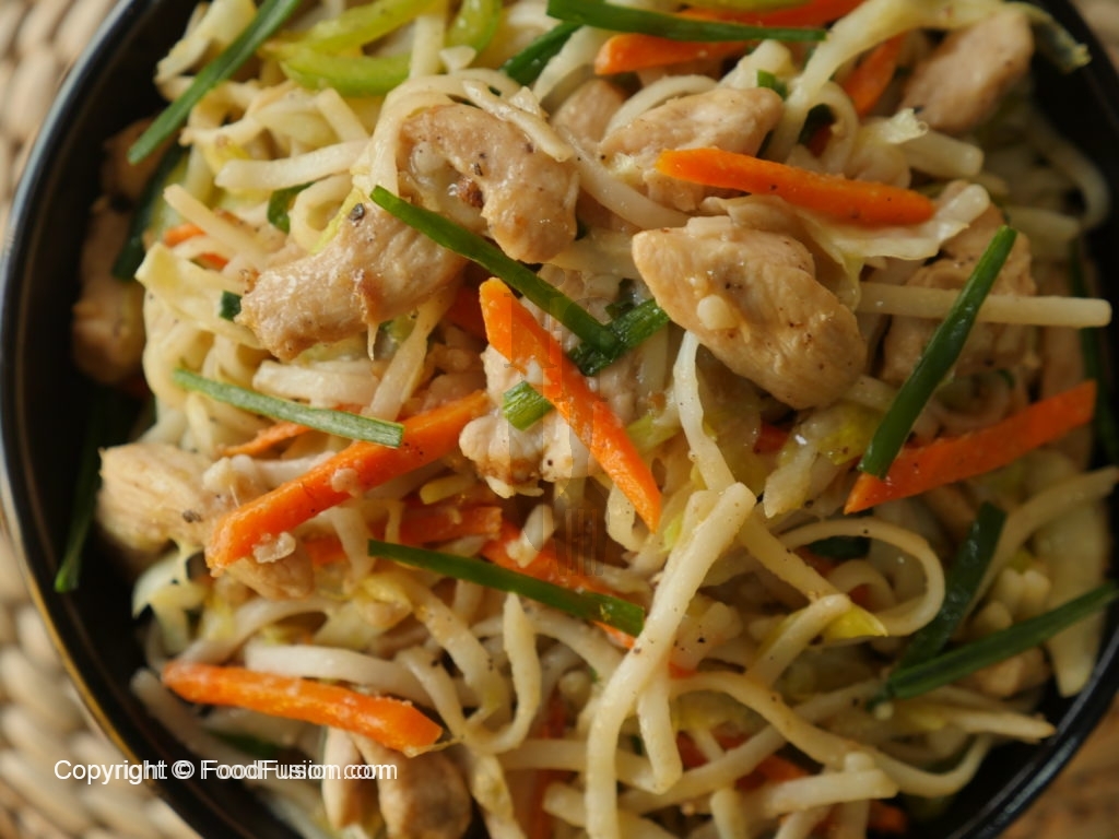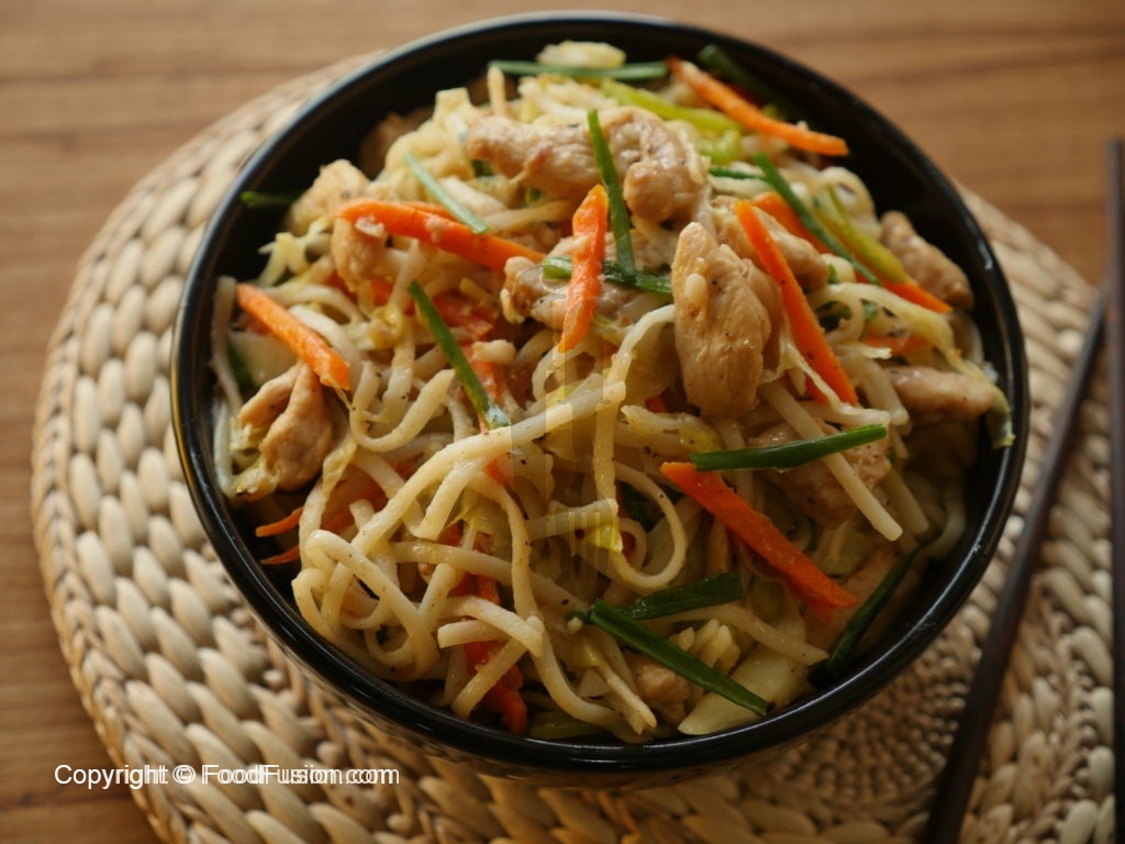 Add chow mein or egg noodles,chicken stock,salt,green onion and stir-fry for 2-3 minutes on high flame.