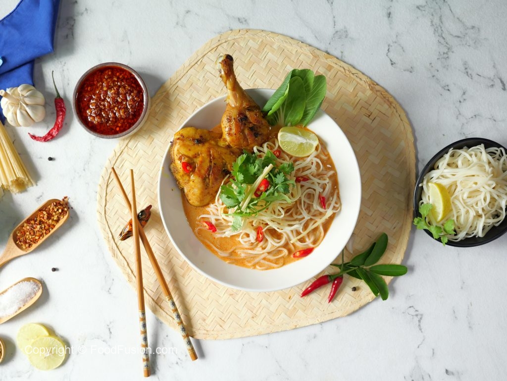 Creamy coconut curry, tender chicken, and slurp-worthy noodles all in one bowl 🍜✨ This Chicken Khao Soi Curry by Food Fusion is rich, comforting, and packed with bold Thai flavors—perfect for a cozy homemade meal.#foodfusion #noodle #curry #happycookingtoyou #winter