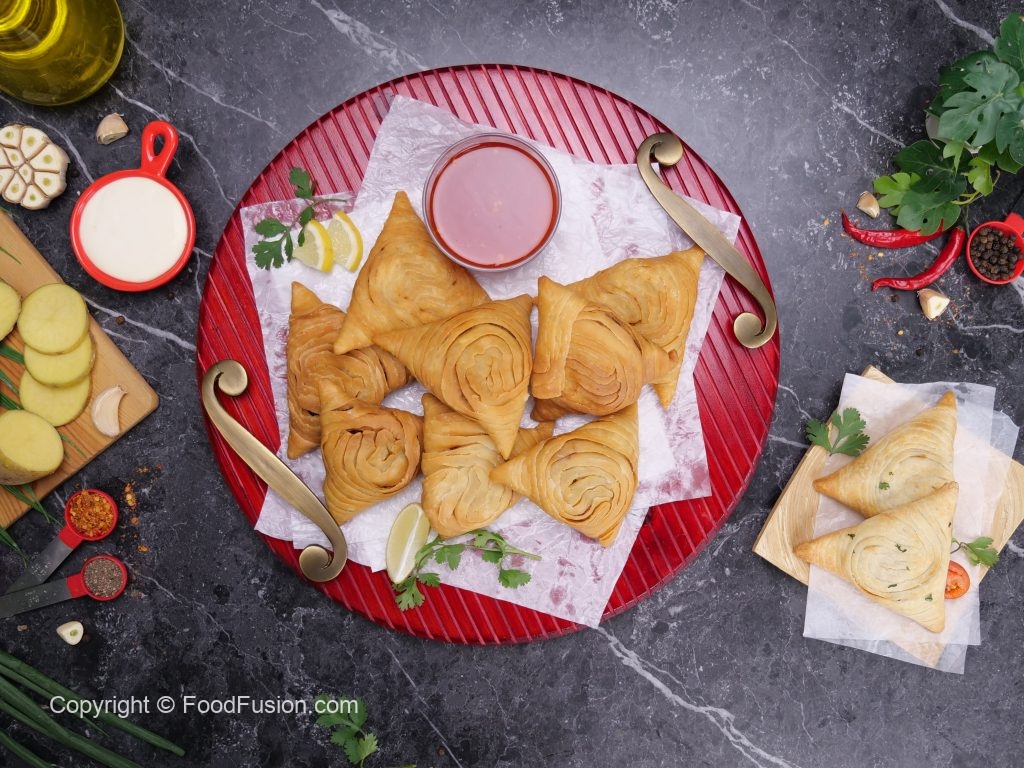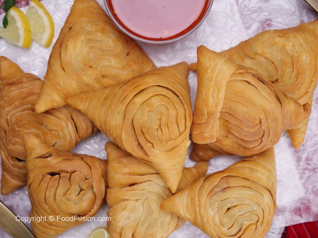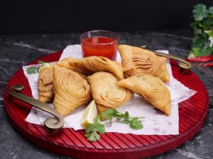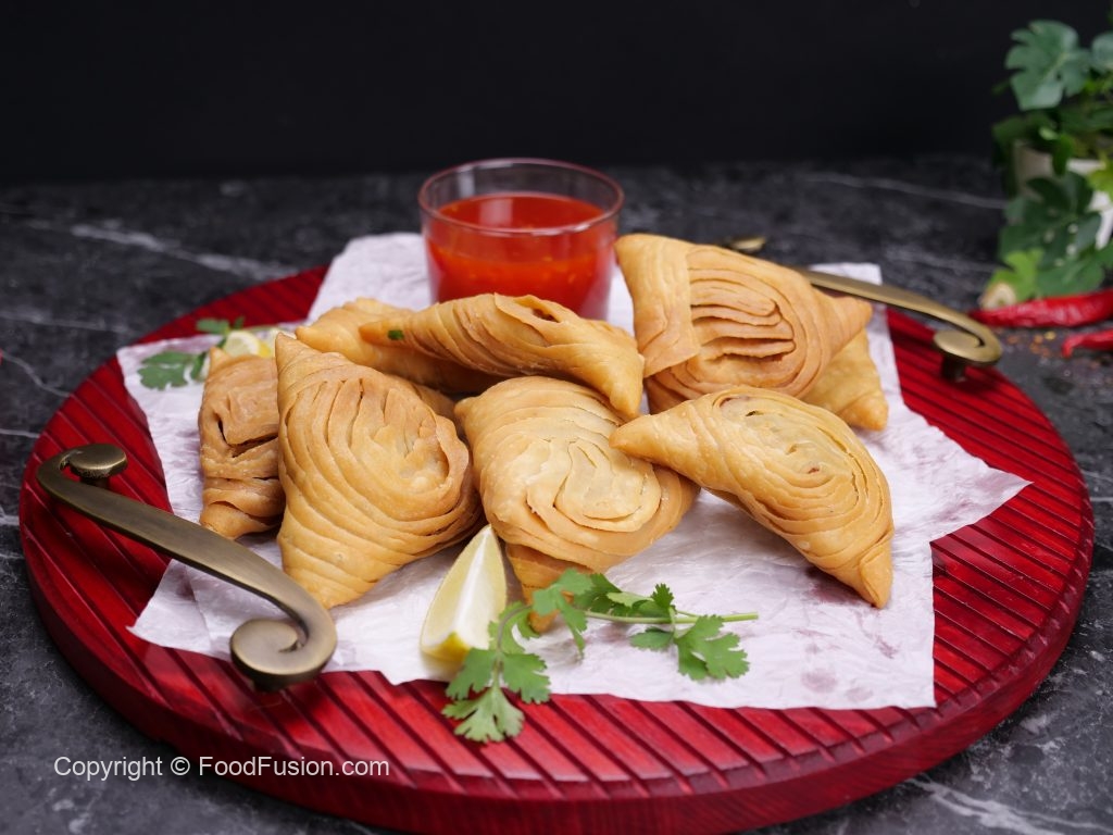 -In a wok,heat cooking oil & fry samosa on low flame until golden & crispy.