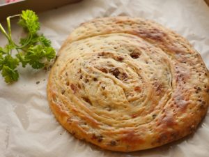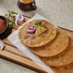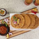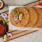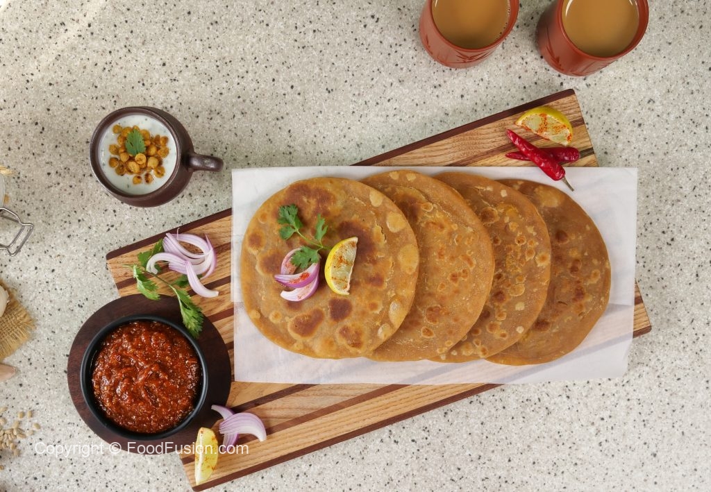 -Heat griddle & fry paratha with clarified butter on medium flame from both sides until golden (makes 9).