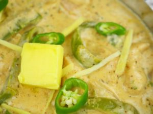Garnish with ginger,green chilies and butter.