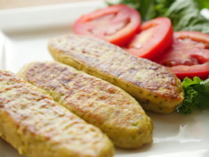 Grease hands with oil,take a mixture and make kebabs (makes: 12-15 Kebabs) and refrigerate for 30 minutes.