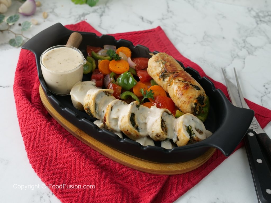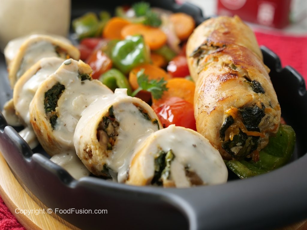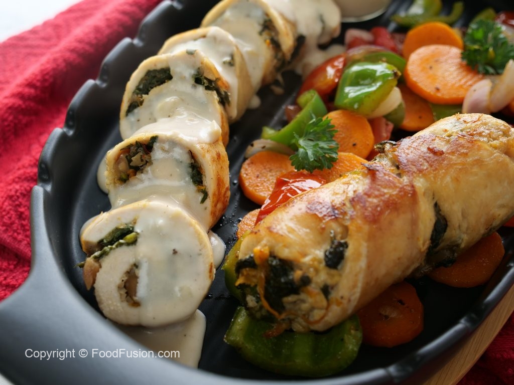Restaurant Style Chicken Roulade recipe with Cheese Sauce. A perfect recipe to impress your guests. #HappyCookingToYou #FoodFusion #OlpersMilk #Olpers