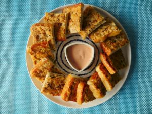 Frying pan mein oil dal dein aur bread slices (spread side downwards) rakh dein aur halki ancch per 4-5 minutes kliya fry ker lein.
