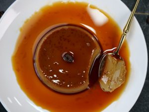 -When ready to serve,run a knife around the edge & then invert onto a serving plate.Smack the top of the pan to loosen the flan & then lift up the cake pan.Slice it up & serve!