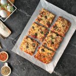 9x12 inch baking tray ko cooking oil sa grease karein aur liquid dough ki half quantity dal ker evenly pheela lein aur few times tap karein.