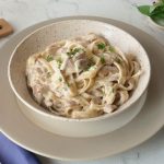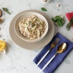 Cut chicken fillet from the center then cut into julienne style strips & set aside.