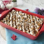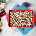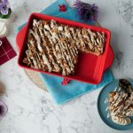 Sprinkle the prepared topping over the soaked bread & bake in preheated oven at 180C for 35-40 minutes (both grills on).