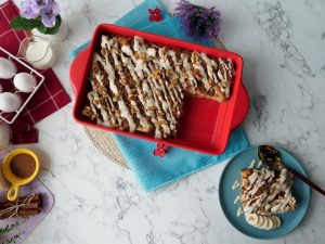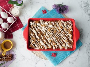 Take out casserole from refrigerator & remove cling film.