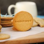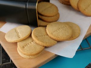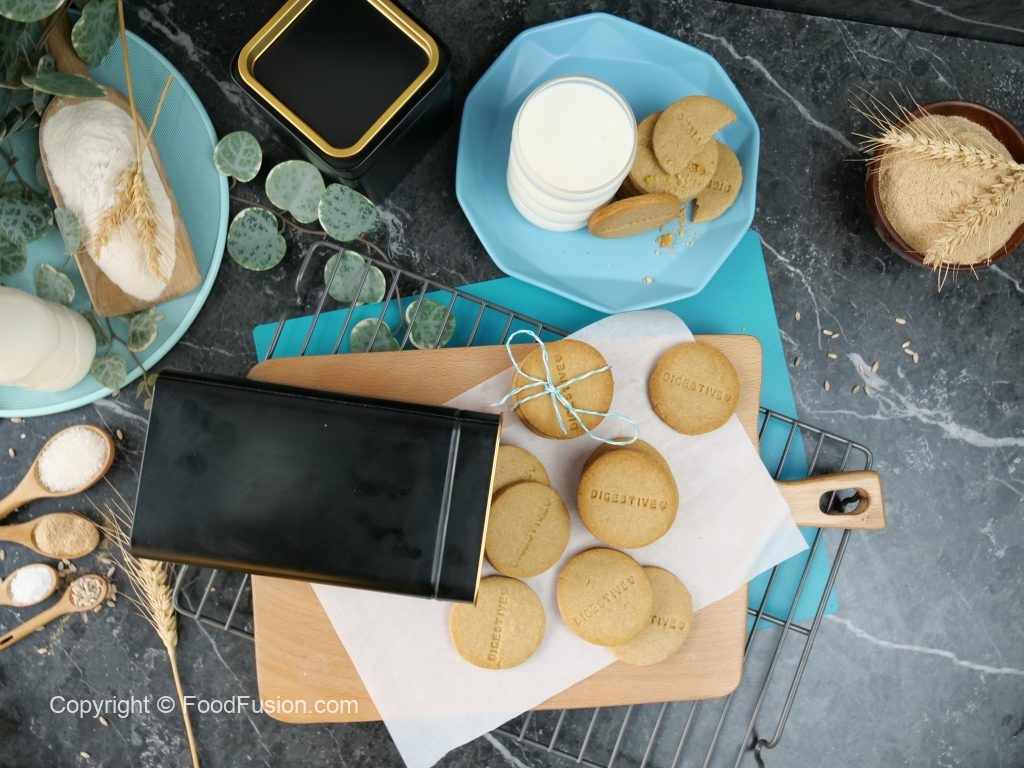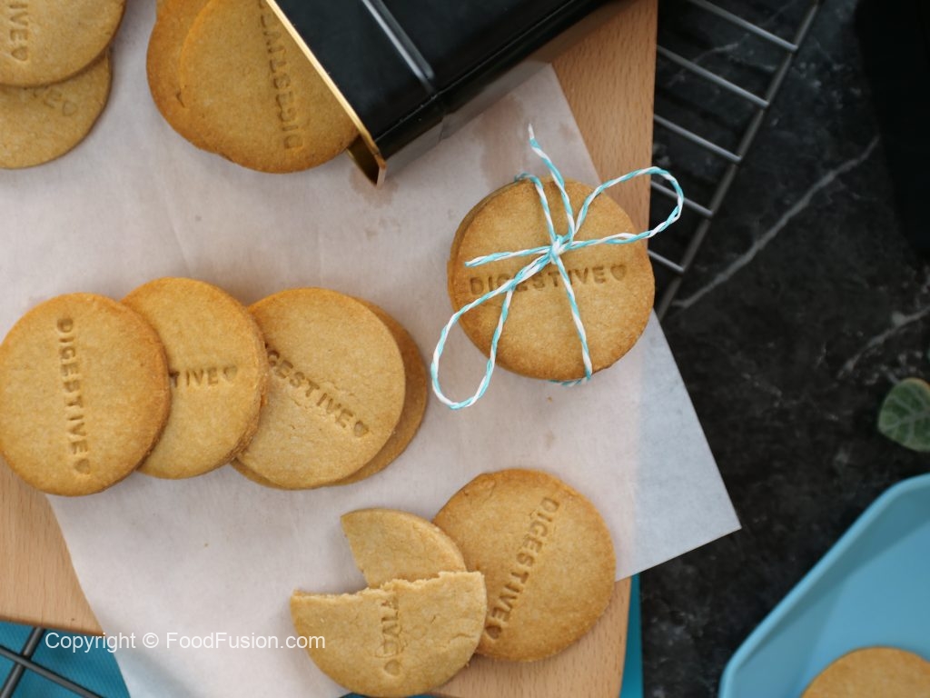 -Cookie cutter (2.25 inches) ki madad sa round shape mein cut ker lein (2 mm thick biscuits).