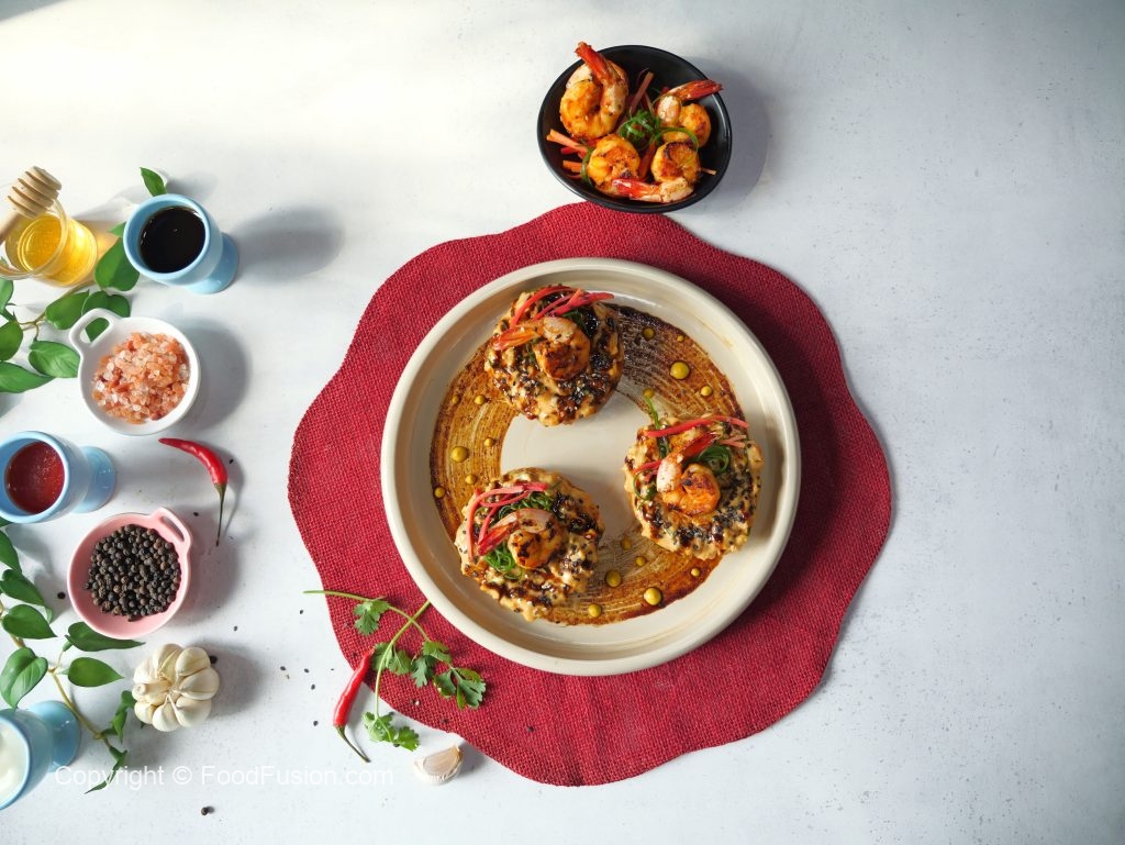 -Add marinated shrimps & fry until golden (2 minutes each side).