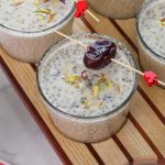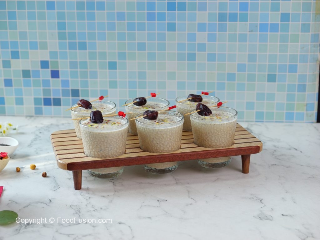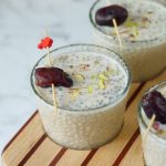 -In a serving jug add soaked basil seeds, ice cubes, dates sharbat. Then mix well.