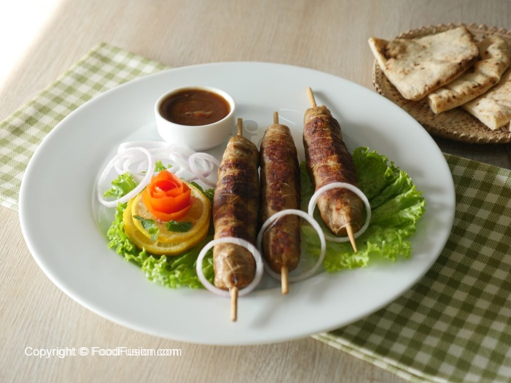 Haathon ko oil sa grease karein aur mixture ko la ker wooden & metal skewers per kebabs bana lein aur kitchen thread sa tie ker lein.