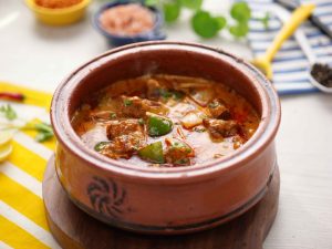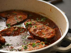 -Beef,adrak lehsan paste aur pink salt dal dien aur rang tabdeel ho janay tak ache tarhan mix karein aur 6-8 minutes kliya darmiyani ancch per paka lein.