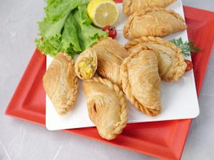 -Add prepared creamy veg filling,apply water on the edges,fold the dough,pinch & seal the edges.