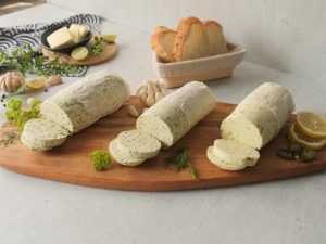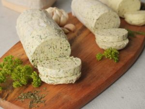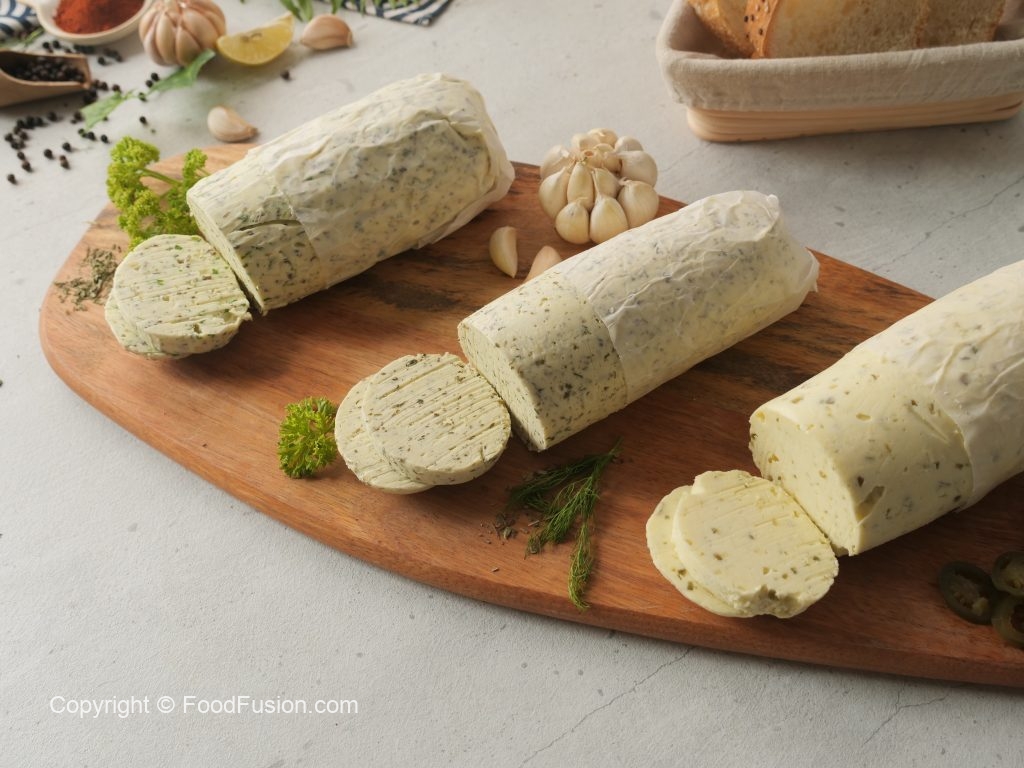 On cling film,add garlic & herb butter,roll out,seal properly and refrigerate for 2 hours.