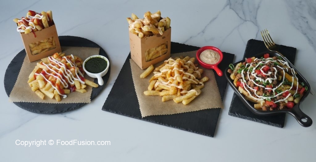 On fries,drizzle tomato ketchup and mayonnaise and serve with green chutney!