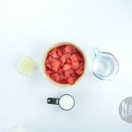 In a blender add watermelon, lemon juice, sugar and blend well