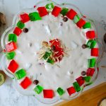 Add red & green jelly & give it a good mix (add jelly just before serving).