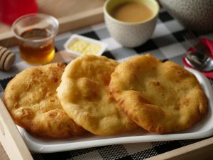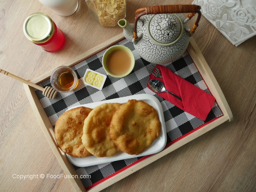 In frying pan,add heat cooking oil and fry dough from both sides until golden brown.