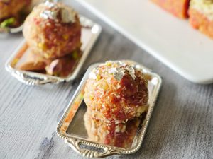 Add cardamom seeds,desiccated coconut,almonds & pistachios and mix well.