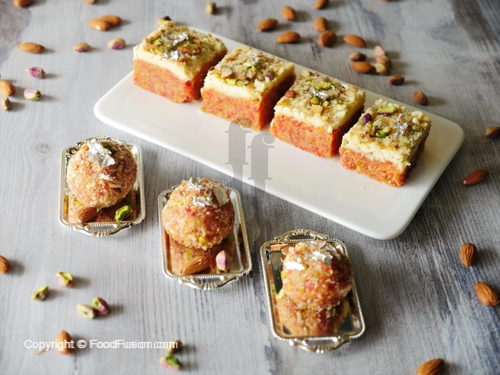 Now take cooked carrot mixture on your palm and spread it,add cooked khoa and cover it to make a ball.