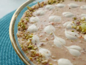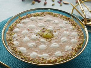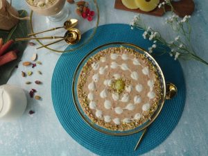 Garnish with cream,almonds & pistachios.