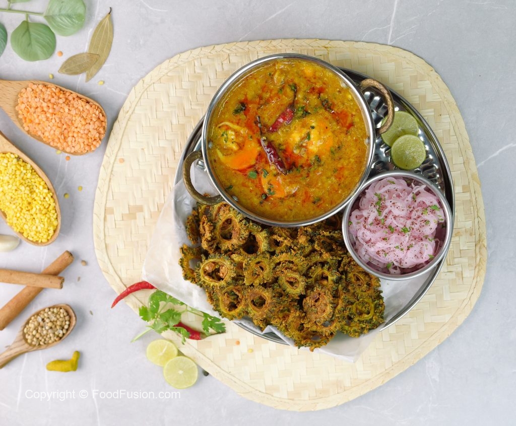 Golden daal served up with a crunch! Dive into the hearty goodness of this daal platter, paired with crispy karelay ke chips for that perfect bite. #happycookingtoyou #foodfusion #araywahh