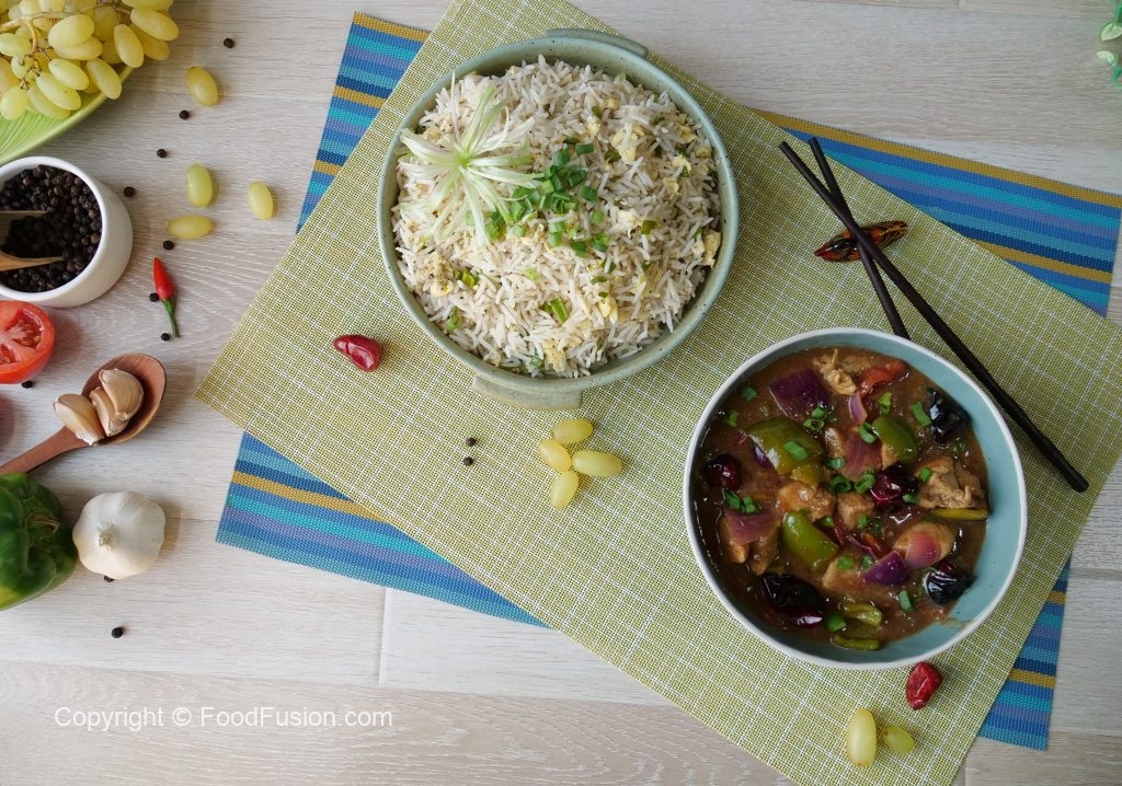 Hara pyaz sa garnish ker ka fried rice ka saath serve karein!