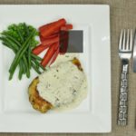 Chicken fillets mein fork or meat tenderizer ki madad sa hole ker lein & side per rakh dein.