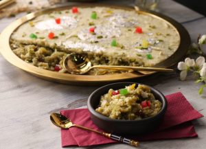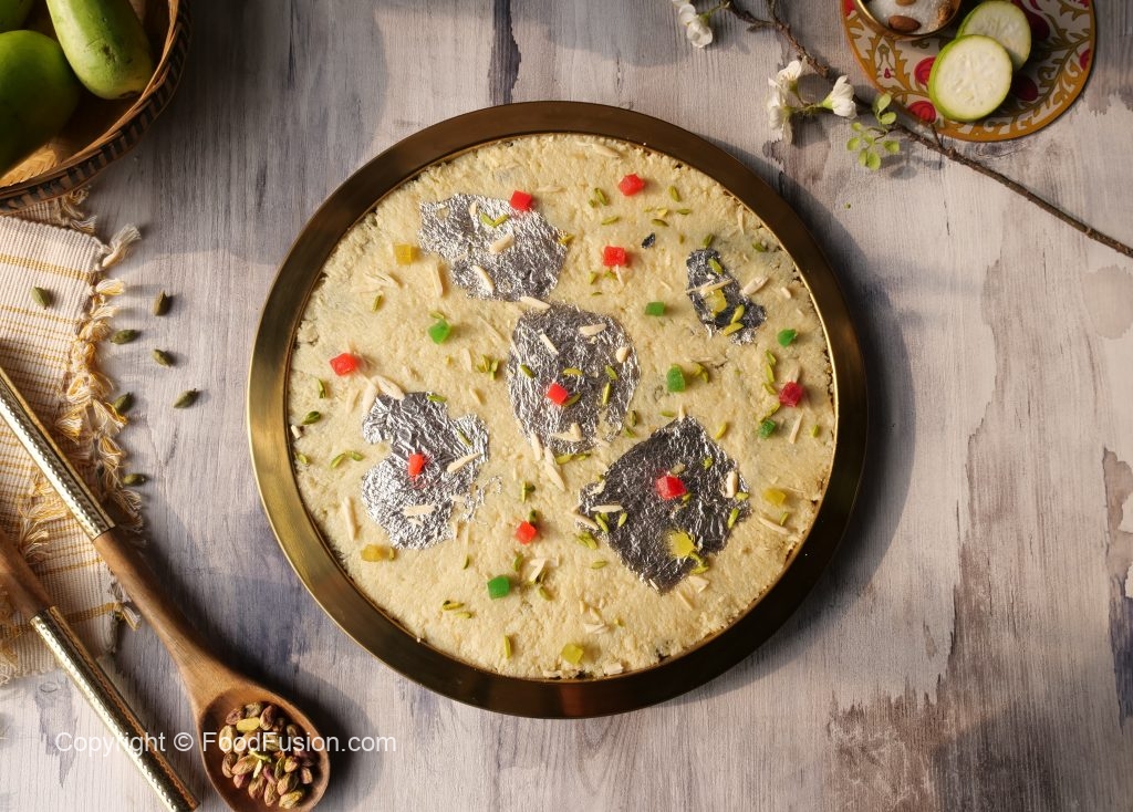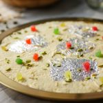 Garnish it with edible silver leaf, tutti frutti & pistachios, serve!