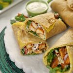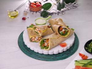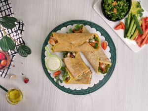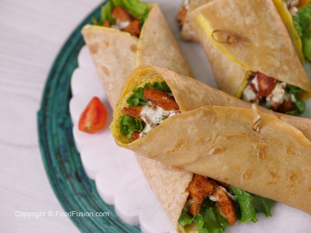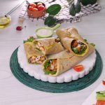 -Transfer it to a flat surface,add salad leaves,cooked chicken,onion,tomato,greek yogurt sauce & wrap it (makes 2-3).