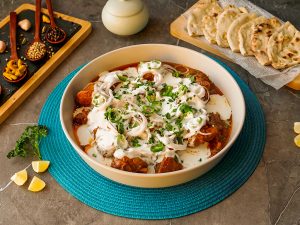 Sprinkle prepared spice mix and give a coal smoke for 3 minutes & serve.