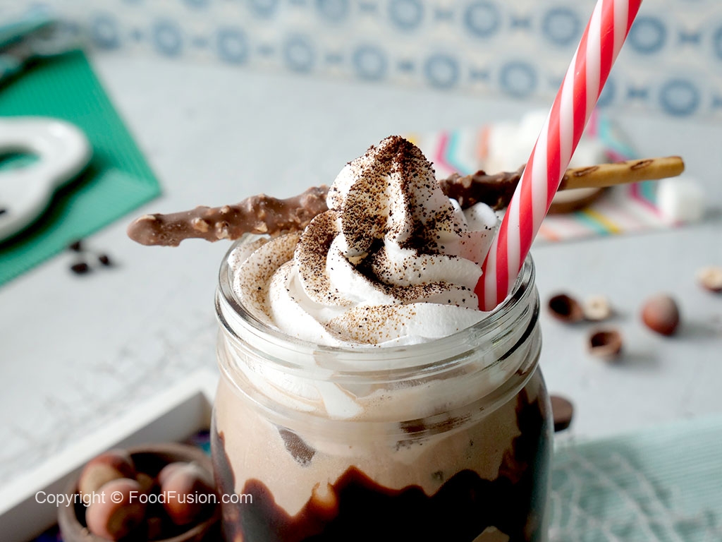 In a blender jug,add milk,instant coffee,sugar,Nutella hazelnut spread,cream & blend well.